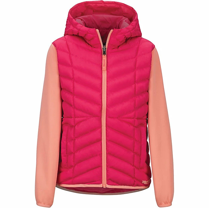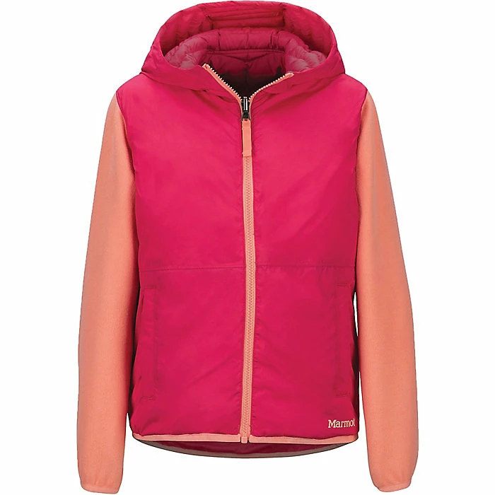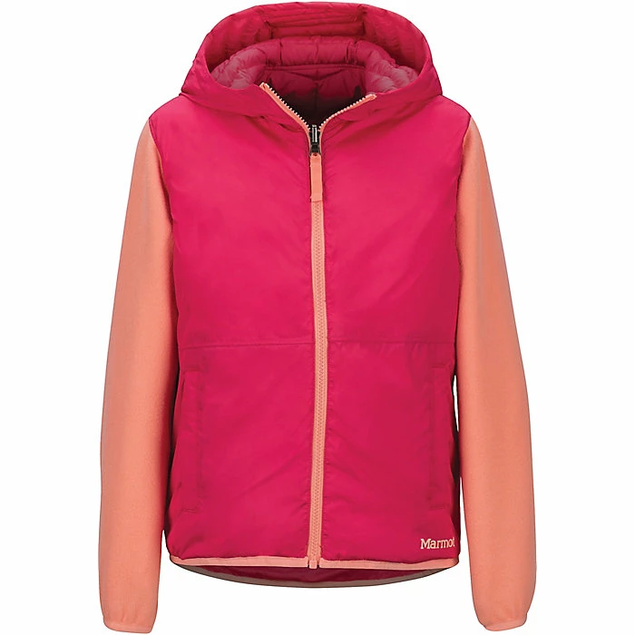 The Marmot Girls’ Featherless Reversible Hoody is a hybrid jacket for solo or layering in fall to winter weather. Off to school in the crisp fall air to taking on the trails over the weekend. The 3M Featherless insulation warms at the center body and hood, while a midweight fleece in the sleeves provides a more breathable warmth. It’s Zippin compatible with select Marmot jackets for when fall gives way to the colder winter months.