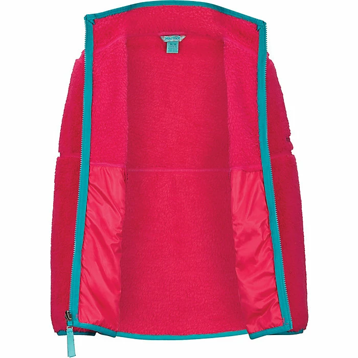 The Marmot Girls’ Lariat Fleece Jacket is a fuzzy fleece for school and play. The high pile shearling fleece is all about the layering, from late fall through the coldest winters and even a bit of early spring. It’s Zippin compatible with select Marmot shells, so creating a system is fast and simple. Cozy warmth with snap closure pockets so she won’t lose her house key.