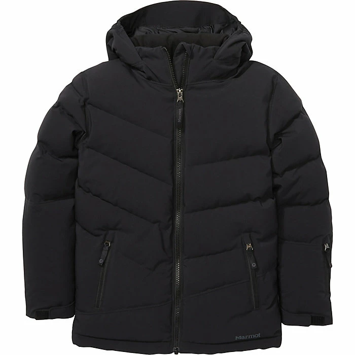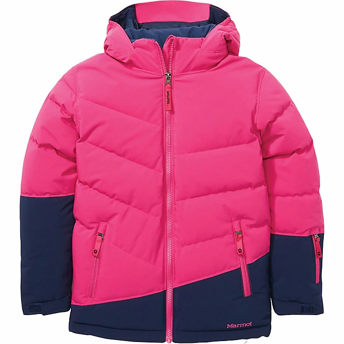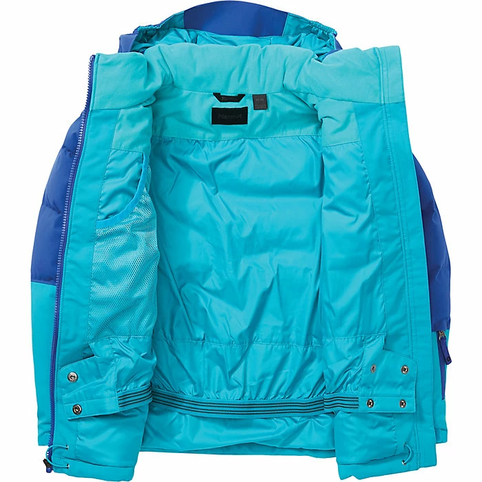 The Marmot Kids’ Slingshot Jacket is a puffer jacket built for the slopes. Start the day out strong with Marmot MemBrain 2L fabric for waterproof, breathable protection. Doesn’t matter what the weather has in store, the shell fabric blocks wind, rain and snow while 700 fill power down drives the heat without the weight. Snow stays off your kid’s back with the help of the powder skirt and the hood is helmet compatible so safety can be maintained along with warmth.