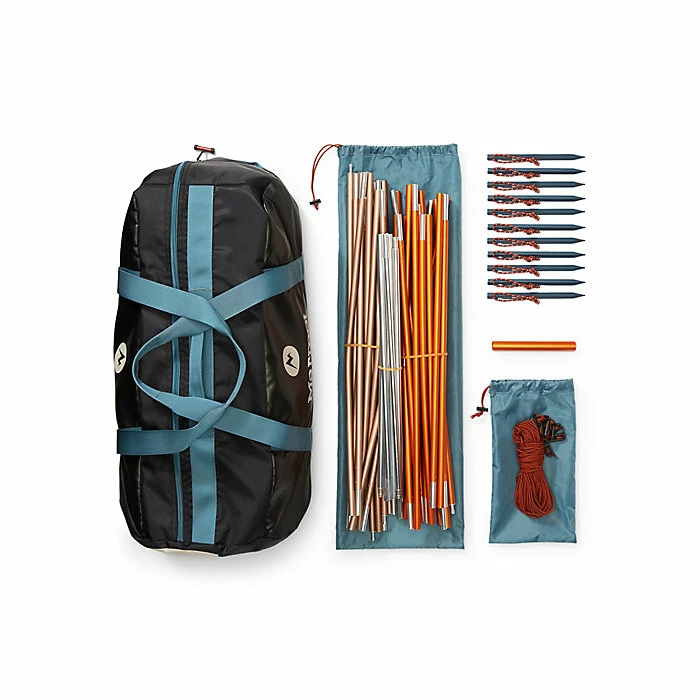 - Color-coded “easy pitch” clips, poles and fly