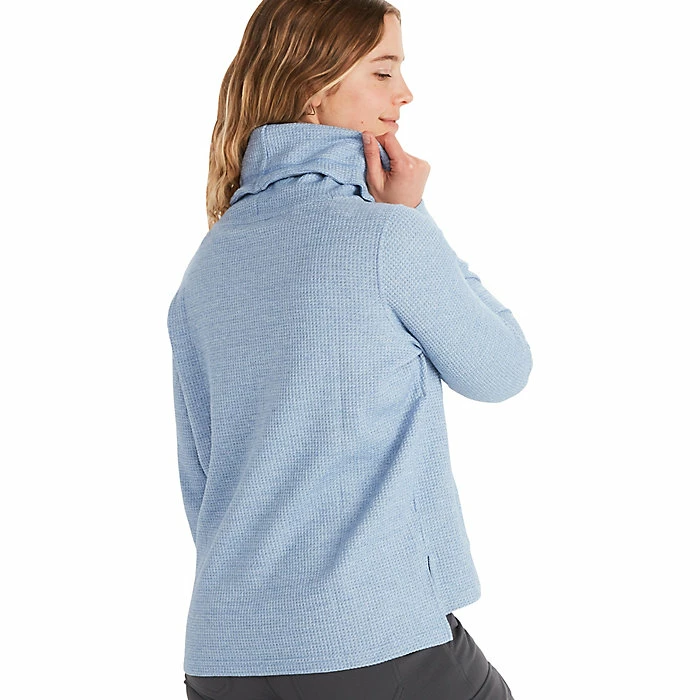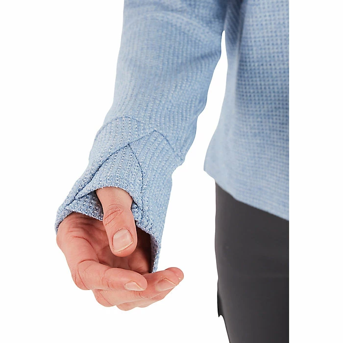The Marmot Women’s Lorraine Pullover is a waffle knit top for comfort in the cool. Thumbholes for more warmth at your hands, plus a funnel neck with drawcord to prevent chills down your spine. The polyester and elastane blend is capable of trail performance, drying fast and offering warmth, but cute and cozy when you’re back in town.