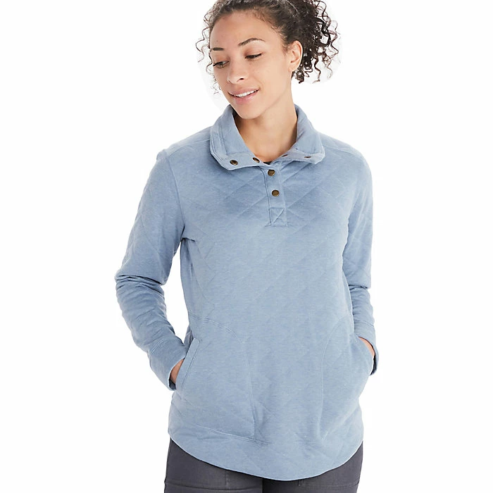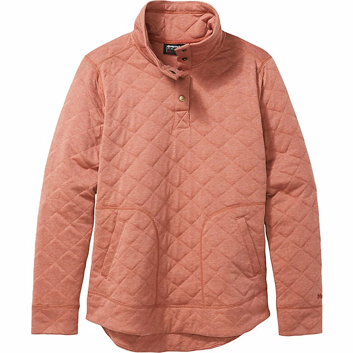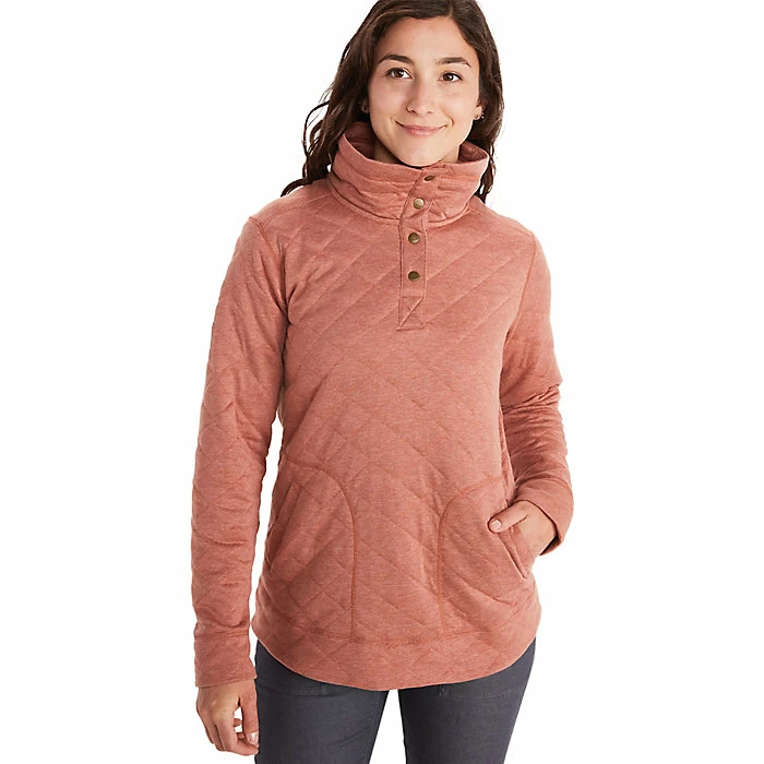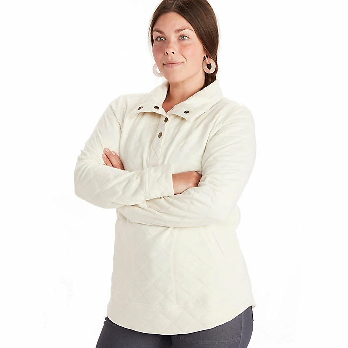 The Marmot Women’s Roice Pullover LS Top is a quilted pullover top for warding off the cold. Cool fall days to blustery winter nights, it’ll bolster the warmth when worn alone or under a jacket. The snap placket makes it all the easier to get on and off as well as regulate your internal temperature. Featuring handwarmer pockets so you can tuck your paws in and keep on strolling.
